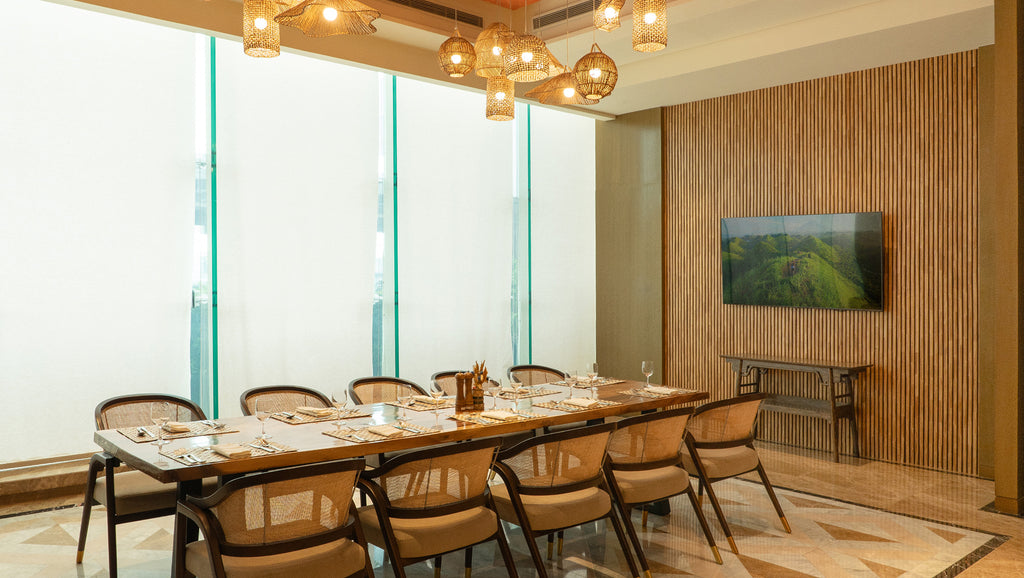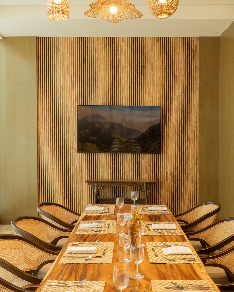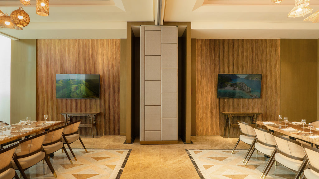 Sheraton Manila’s private dining room now features our Kyoto wall paneling, engineered from 70,310 recycled chopsticks. These walls not only enhance the visual appeal and acoustics of the space, but also contribute to the hotel's sustainability efforts by reducing 3,382 kgCO2e emissions.
